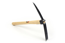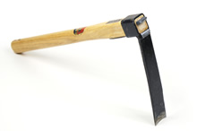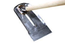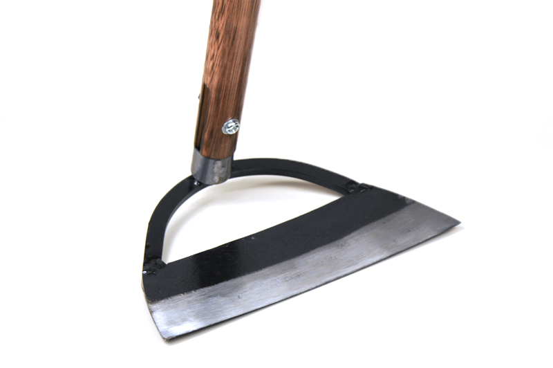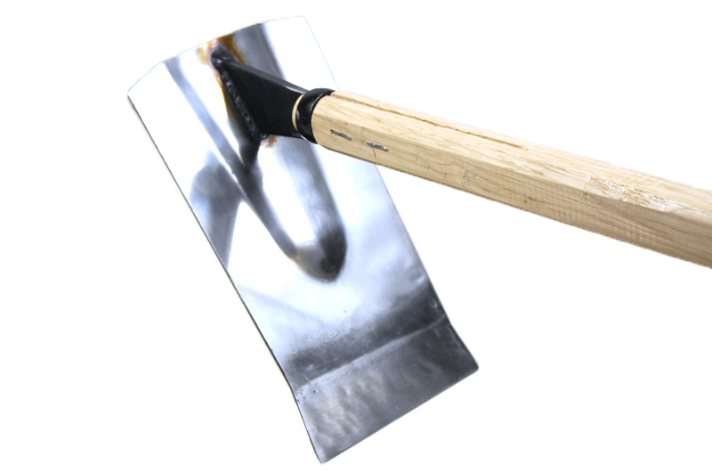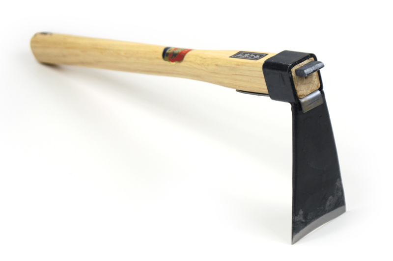 荒い土地の開墾から収穫まで、鍛造によってバランスの良い重みで切れと使いやすさを生み出したプロ仕様。柄は目のつまった国産本樫材を使用しており、荒い作業にも耐え、長くお使いいただけます。