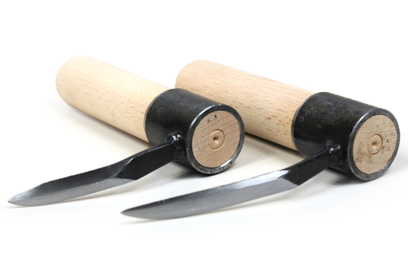 弊社の製品は鍛造品です。ハンマーによって鍛えられた鋼は粘り強く、耐久性にすぐれ、世代を超えてお使いいただきたいと願い日々製作しております。長年の経験をもとに、火造りによって各部の厚みをバランス良く調節し、それぞれの用途に応じて作業しやすいように角度や反りを設定してありますので、疲れにくく長くご使用いただけます。 |