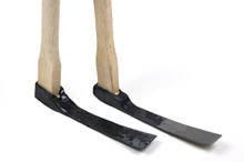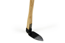 本職用に比べて刃の長さヘッドの重量を抑え、手軽に家庭菜園を楽しめる軽作業用。柄は軽さを求めた椎材を使用し、グリップは細めで女性にも持ちやすいつくりとなっています。